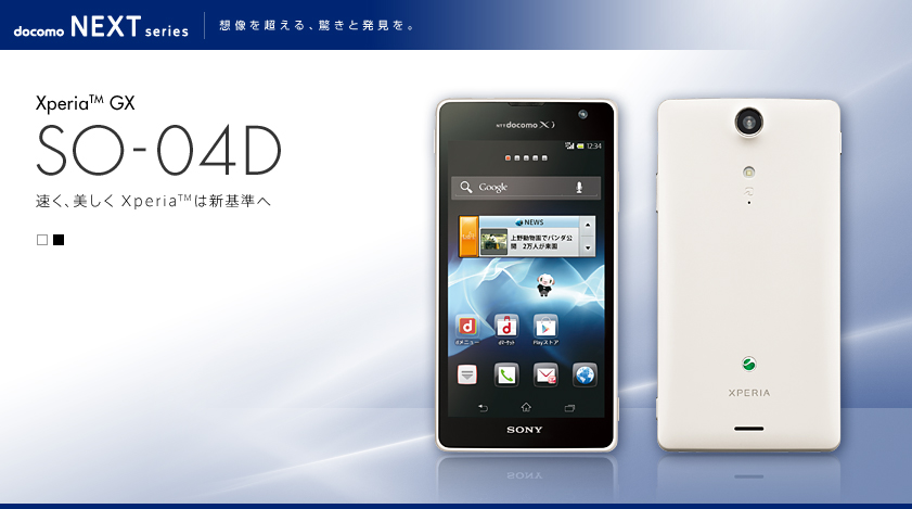 ソニエリのXperia GXはLTE対応端末としては最軽量ってとこと、アーク型のデザイン・薄さですね。